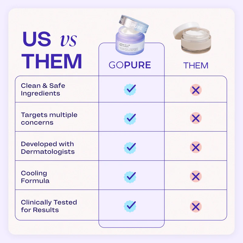 Refusing to accept that a defined jawline must be a memory, we dedicated ourselves to formulating a smart, focused treatment. We blend potent, key actives to specifically target slackening skin and wrinkles, honoring our core principles: honest formulas, visible results, and unwavering purity. Gopure is more than a product; it's our promise to help your skin reveal its naturally youthful vitality.